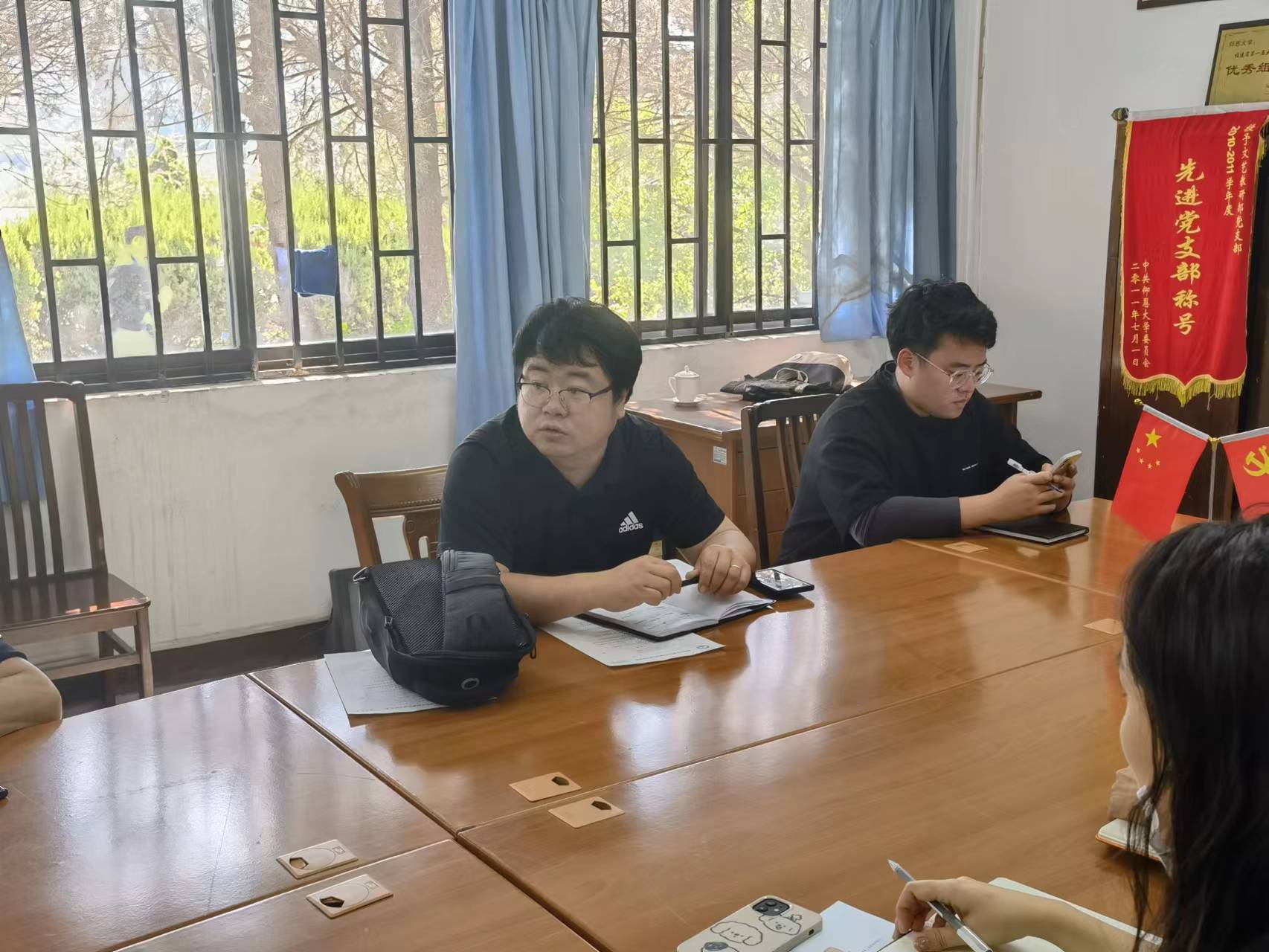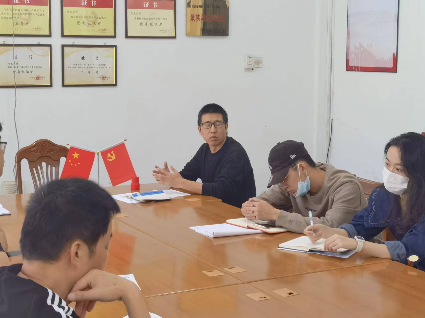 详细讲述了上周和黄怀宇同志就深入学生群体,与艺术教育系专业的入党积极分子谈话所发现的问题进行了通报,告诫各专业课教师在课堂中、课后、生活学习中都要积极与学生们进行沟通和引领,带领学生们尽快适应大学生活,努力学好专业知识。