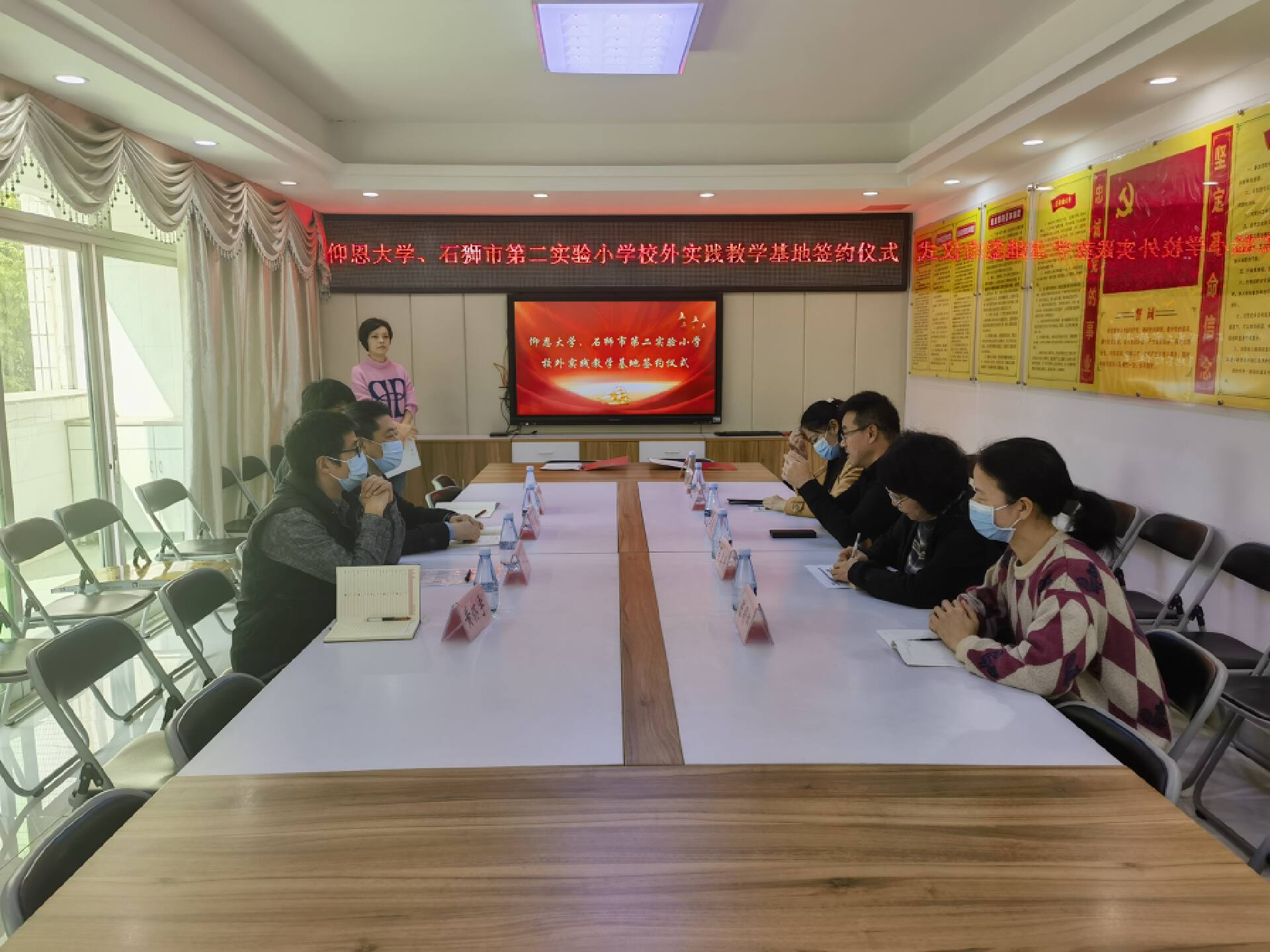 本次签约授牌仪式双方达成了合作共识,今后将以此实践教学基地的建立为契机,进一步加强交流与合作,聚合力量,共谋发展。双方在大学生教育实践、教师培训、教学研究、基地学校发展等多方面将建立合作共赢的长效机制,为实现合作目标而携手前行!(图:黄怀宇,文:吴雨柔、黄怀宇)