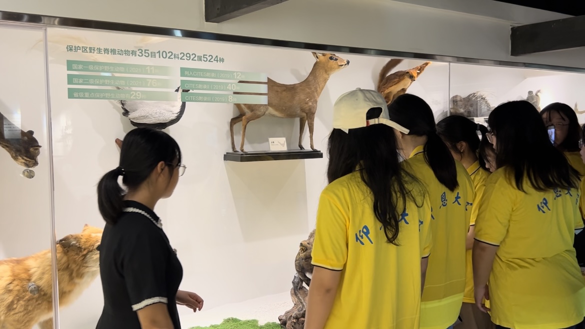 当日,队员们走进保护区,切身感受自然保护区内的森林环境,大家学习了植物的识别,认识了各种各样的蕨类植物。随后,队员们来到天宝岩博物馆进行学习。在展馆内,随着博物馆讲解员的讲解,我们了解到天宝岩内植物、动物、昆虫还有植被的种类,以及天宝岩管理局是如何保护天宝岩自然保护区的。展馆内陈列一比一还原的动植物标本。
