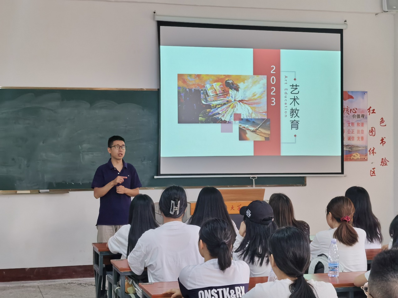 会议伊始,教师们对新生的到来表示热烈欢迎。随后,卜繁波抛砖引玉,层层深入,就专业概况、人才培养模式、课程开设、教师配置、就业展望、在校任务等方面对艺术教育专业做了详细的介绍,让新生们对自己所学专业有了初步的认识。他深情寄语青年学子:要以德为本,立德为先,树爱国情,立报国志;要学会与人相处、关注身心健康,积极融入集体;要珍惜当下,保持对强健体魄、博学审问、和睦友爱、立志笃行的热情,积极乐观,昂扬向上。句句箴言让新生们获益匪浅。
