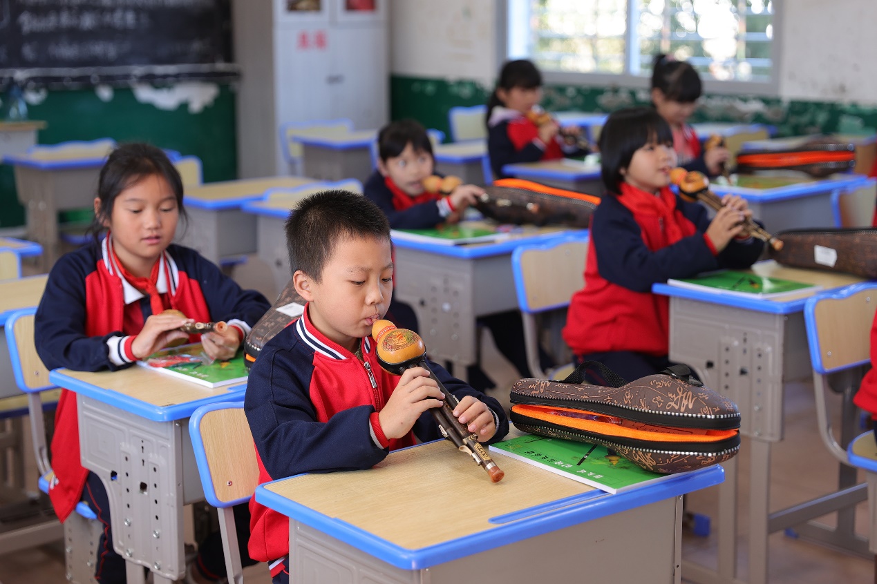 仪式结束后即刻开展支教第一堂课,由Best365官网22级学生分班教导竖笛、葫芦丝、顺笛、陶笛等课程。