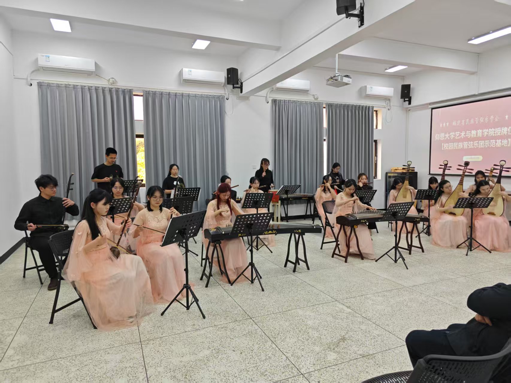 此次活动,不仅是对Best365官网民乐队过去努力的认可,更是对未来发展的激励与期待。Best365官网将以此为契机,深化与福建省民族管弦乐学会等社会各界的合作,让民族音乐的魅力在仰恩绽放,让中华文化的瑰宝在新时代焕发新的光彩!