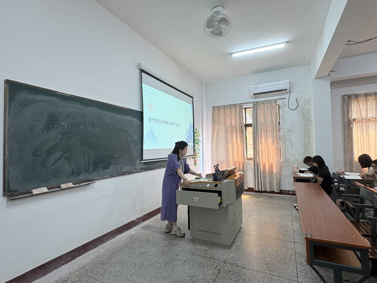 课堂上,郑丽红老师以"中西艺术教育思想的交融与发展"为主题,通过案例对比、影像资料和互动问答,生动阐释了不同历史时期艺术教育理念的演变。她以"礼乐教育"与"雅典学院"为切入点,结合当代教育实践,引导学生深入思考艺术教育的传承与创新。青年教师认真记录教学环节,学习郑老师如何通过问题链设计激发学生思辨能力,以及将课程思政元素自然融入专业教学的技巧。
