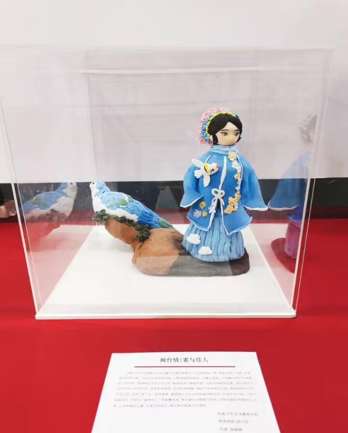 (学子创作的超轻黏土作品《闽台情:雀与佳人》细节图)涂丽婷