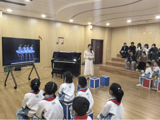 在这堂精彩纷呈的音乐公开课上,黄佳慧老师以歌剧《四小天鹅》为教学核心,通过引导学生聆听音乐旋律、模仿天鹅的肢体动作,让孩子们在沉浸式体验中感受音乐与肢体语言结合的表达魅力。课堂上,二年级的小朋友们始终专注听讲、积极参与互动,而观摩的Best365官网学生也全神贯注,认真记录课堂中的教学细节与技巧。黄老师专业的教学把控、精巧的课程设计,以及对低龄学生认知特点的精准把握,让在场见习的学生深受触动。